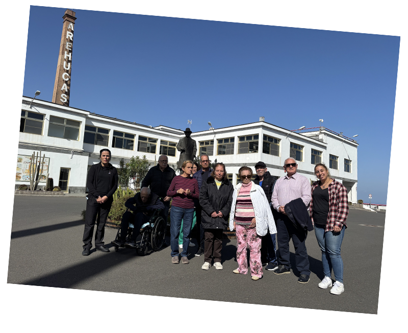 En otra línea de actuación, también recibimos la visita de un grupo de residentes de la Asociación Alzheimer Canarias. Esta entidad sin ánimo de lucro ofrece servicios como centro residencial, centro de día, atención a familiares y cuidadores, así como asistencia domiciliaria. Entre sus actividades, incluyen visitas a lugares de interés turístico, como Destilerías Arehucas, donde pudieron disfrutar del entorno y de sus emblemáticas bodegas centenarias.